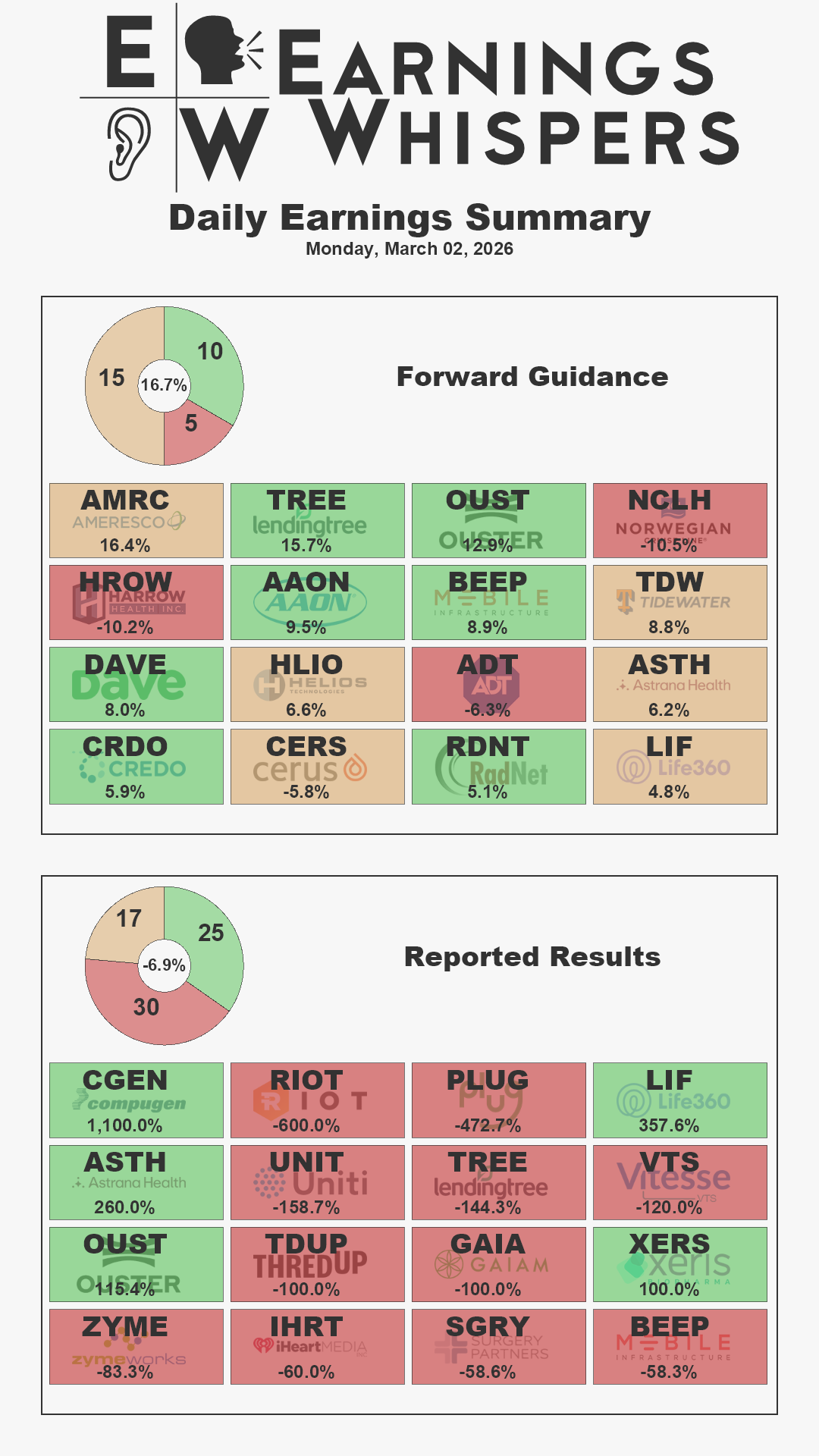 - Negative: Harrow Health (HROW) and ADT (ADT) saw revenue/earnings below estimates.