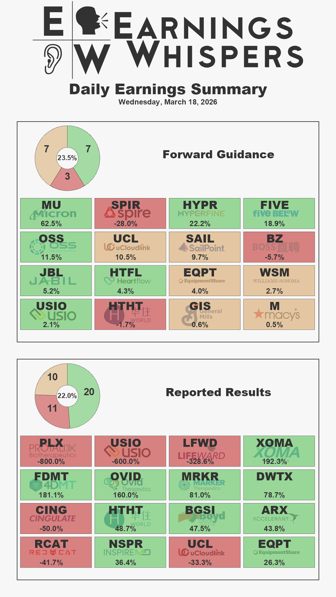 - Other Positive Guidance: Five Below (FIVE), One Stop Systems (OSS), Jabil (JBL), Heartflow (HTFL), Usio (USIO).