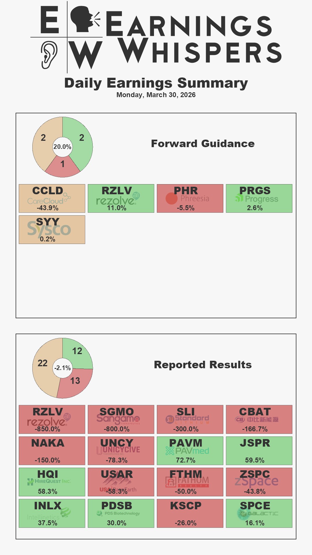 - CareCloud (CCLD) and SYSCO (SYY) reaffirmed their guidance.