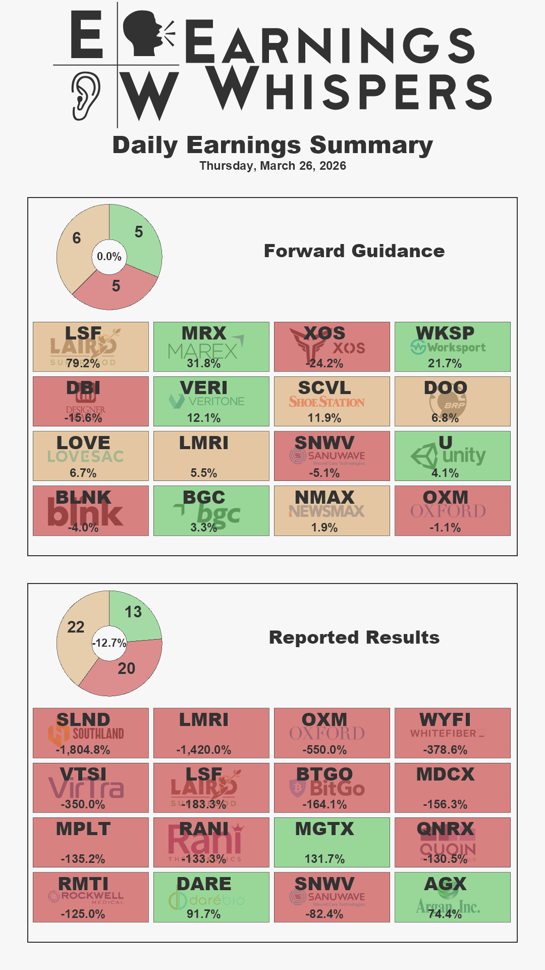 - Designer Brands (DBI), Sanuwave Health (SNWV), and Blink Charging (BLNK) guided below estimates.